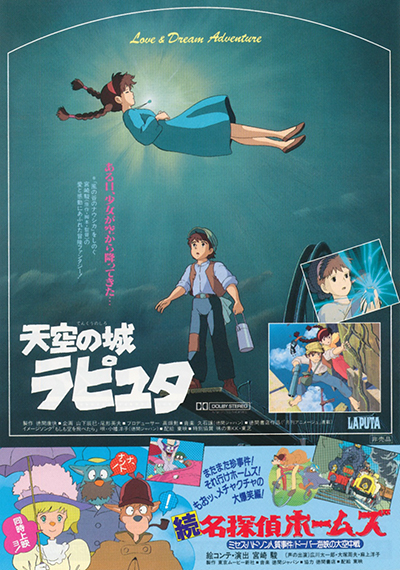 Chirashi (flyer) du film Le château dans le ciel annonçant la projection du film et de deux episodes de Sherlock Holmes réalisés par Hayao Miyazaki.