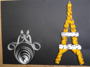 Michel et sa belle création plastique "Totoro à Paris la nuit" en paperolles