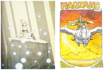 En effet, parallèlement à cette activité, Giraud entame une autre carrière sous le nom de Moebius. Cet autre aspect de son œuvre trouve ses sources dans un deuxième voyage au Mexique en 1965, où il expérimente les champignons hallucinogènes et se plonge dans le monde du chamanisme. Il se passionne dès lorspour le monde de la SF. Il commence à dessiner dans un style différent, plus adulte, qui marquera définitivement le mondedu neuvième art. Celui-ci peut alors sortir du monde censuré et limité de la BD jeunesse et s'épanouir dans un nouvel univers. Sous le pseudonyme de Moebius, Giraud créé ainsi en 1975 avec Jean-Pierre Dionnet (oui, oui, le monsieur Cinéma de quartier de Canal + !) le cultissime magazine Métal hurlant, où il explore le monde de la SF, dans un style onirique.
