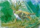 Les créatures hybrides forment un véritable bestiaire chez Miyazaki comme chez Moebius. Chez ce dernier, on connaît par exemple son travail sur Abyss et ses magnifiques et grâcieuses créatures, mais on connaît moins son travail sur une adaptation animée de Willow, où se mêle mythe et représentation réelle et figurative. Le visiteur peut également admirer avec émotion son travail sur Les Maîtres du Temps, comme ce dessin du fameux Ouin-Ouin, incarnation de l'innocence et d'une certaine naïveté, sur lequel est juché le petit Piel. Chez Miyazaki, les êtres hybrides sont souvent symboliques, comme le Sans-Visage, comme dénonciation de notre société de consommation. Mais l'exposition permet également de comprendre la technique d'animation : ainsi le visiteur peut observer un croquis d'Ohmu, visiblement destiné à comprendre son mouvement lorsqu'on le plie.