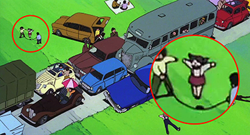 Le premier long métrage de Hayao Miyazaki, Le château de Cagliostro, lui permet de convier la petite Mimiko, de Panda, petit panda. La fillette saute à la corde en attendant que la route qui conduit à la cérémonie de mariage de Clarisse et du comte de Cagliostro se décongestionne.