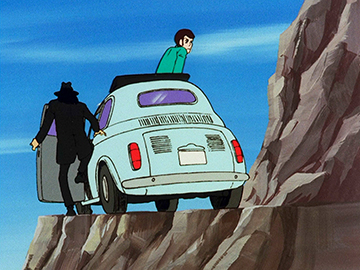 Les toutes dernières secondes de l’épisode citent allègrement Le château de Cagliostro, le premier long métrage de Miyazaki.