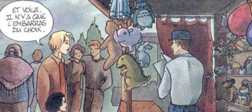 « Quelle déception ! Certes, des originaux de Giraud, c'est toujours merveilleux, mais des repros de crobars de Miyazaki, sur un faux papier dessin à gros grain (incompatible avec le trait reproduit dessus), c'est triiiiiiiiiiste !
