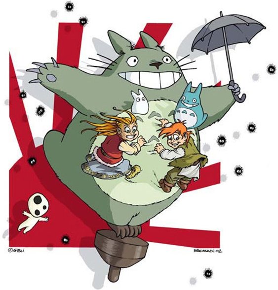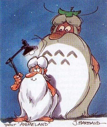 Non plus sérieusement, en 1991 j'ai découvert une illustration dans un magazine japonais en import. Je me suis dit "Woaw, ce truc est génial !" Il s'agissait de Totoro attendant le bus à coté de Satsuki... Cette image est longtemps restée un mystère pour moi (mon japonais est des plus basiques). Jusqu'au jour où l'univers de Miyazaki a commencé à filtrer autour de moi, avec d'abord la sortie en salle de Porco Rosso. Plus tard, j'ai enfin découvert qui se cachait derrière cet étrange monstre poilu dont la petite fille au parapluie ne semble pas avoir peur. Après la découverte de Totoro, alors que la japanime commençait à percer en France, j'ai très vite vu tous les longs métrages des studios Ghibli qui étaient déjà sortis au japon et je suis avec gourmandise chaque sortie en salle.