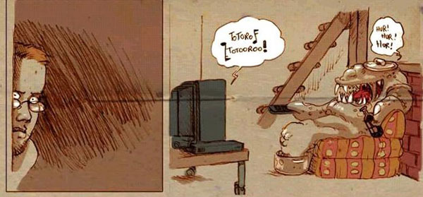 Raclette mutante devant Mon Voisin Totoro par Boulet
