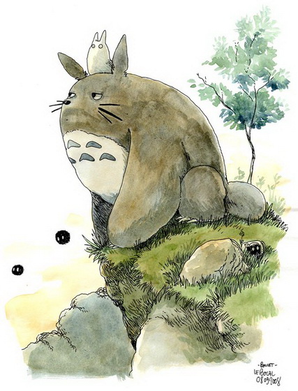J'ai découvert Ghibli avec Totoro ! Et là je me suis dit: "waouh !" Le trait, l'univers, la poésie, tout m'a tout de suite séduit. Petit, j'était animiste (je dis petit pour pas avoir l'air ridicule). Tout était vivant. Les arbres, les animaux, même mes peluches. A travers ce prisme, le monde est bien plus dense, rayonnant, riche. J'étais persuadé qu'au détour d'une ballade, j'allais rencontrer une fée amoureuse, un hérisson qui chante ou bien encore un chêne majestueux qui me demanderait de l'aide. J'ai redécouvert ces croyances de petits garçons à travers Totoro. Elles prenaient vie.
