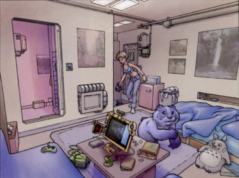 Bruno Bellamy est un fan de Ghibli depuis pas mal de temps, puisque cet extrait de Sylfeline, où l'on peut voir Totoro et Nausicäa sur les posters ornant les murs de ce conapt, date de 1993 :