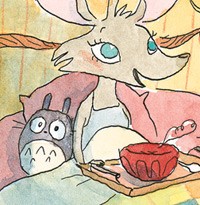 Je ne vous ferai pas l'affront de vous dire qui sont les petits personnages sur le rebord de la fenêtre et le doudou de Pélagie, si ? Sachez que pendant des années, j'ai chassé les clins d'oeil à Miyazaki dans les bds franco belges pour le site Buta Connection et qu'on aurait donc tort de se priver à en faire nous mêmes.