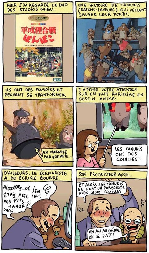 Curiosité oblige, je me suis ensuite intéressé au reste de la production des studios Ghibli !! Je crois qu'il y en a que deux que j'ai pas vu : Mes voisins les Yamada et On your mark. Sinon, Le Tombeau des lucioles est magnifique, j'adore aussi Souvenirs goutte à goutte, j'ai bien aimé Le royaume des chats, Pompoko aussi est pas mal mais je suis pas super fan… Je me sens de toute façon plus proche de l'univers graphique et de la façon de raconter de Miyazaki !