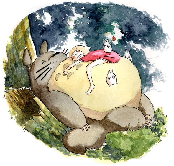 Je n'ai pas (encore) vu tous les films Ghibli mais j'en aime beaucoup pour diverses raisons... Le côté fascinant de Chihiro, la poésie de Mononoke, l'absurde de Pompoko, l'humour des Yamadas... mais si je ne devais en retenir qu'un seul ça serait Totoro parce que je retrouve mon âme de gosse, que je rêve de monter dans un Chatbus ou de dormir sur le ventre de Totoro... ça me met systématiquement de bonne humeur ! J'ai repris sa noiraude à deux trois reprises parce que j'aime cette petite bestiole rigolote avec de grand yeux... J'aimerais avoir un imaginaire comme celui de Miyazaki :) *soupir*
