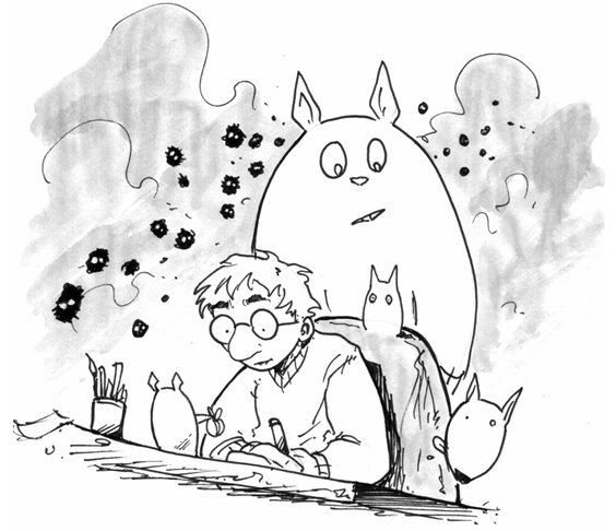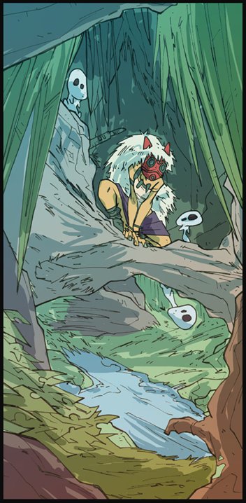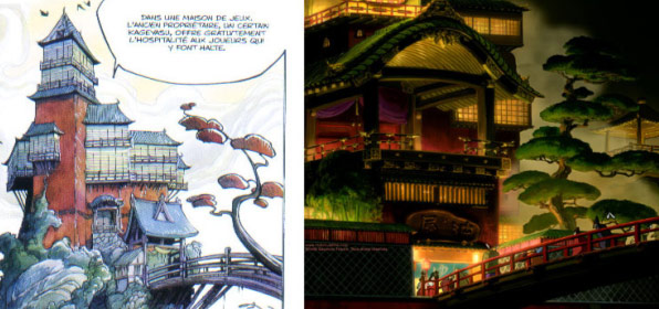 Si je suis influencé dans mon propre travail ? Ohhh que oui et pas qu'un peu, surtout pour les décors... Bien que je travaille essentiellement en noir et blanc, je décortique les art books de ses films pour voir comment je peux dessiner les arbres, la mousse, les murs, tous ces détails qui font qu'un décor est beau.