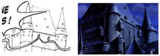 Détail d’un décor d’une bd non éditée et celui du Château de Cagliostro.