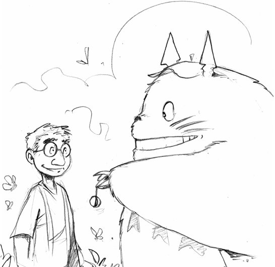 Je ne sais plus exactement à quelle occasion j'ai découvert le travail d'Hayao Miyazaki ; sûrement à la sortie de Princesse Mononoke, ou alors c'était avec Totoro... Quoi qu'il en soit, à l'époque, je dévorais les films d'animation et j'allais voir tout ce qui sortait au cinéma. Miyazaki m'a conquise par son côté onirique et étrange. Toutes ces bestioles, ces entités, ces monstres dont on n'explique pas vraiment la présence mais qui sont là et vivent. C'est fascinant. J'ai un ami passionné d'animation, c'est lui qui m'a fait découvrir beaucoup de ces films. A chaque fois c'est un vrai plaisir. La qualité de l'animation, les thèmes, les personnages vivants et atypiques... ça change des niaiseries de Disney...