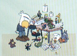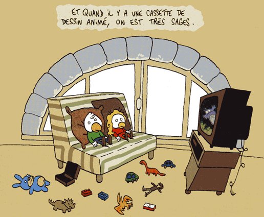 En plus, faut bien le dire quand même, j'ai rarement trouvé un auteur aussi heu... sensible. Un trait aussi simple et aussi juste, le rêve de tout dessinateur quoi. Et l'animation est toujours aussi pointue, fluide, ça coule de source en quelque sorte. D'ailleurs je me rends compte en écrivant que je raccroche beaucoup de termes aqueux à son univers... C'est bizarre tiens... Ensuite, il y a évidemment le côté univers enfantin mais qui a conscience de la maturité des enfants sur certains sujets, ce que les adultes nient généralement à leurs gosses.