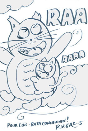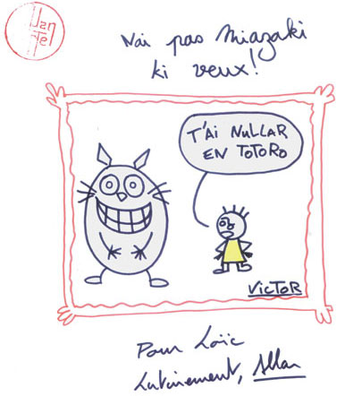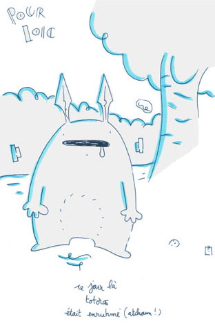 Fuse s'était mis en tête de faire remplir son carnet de dessins réalisés par les blogueurs réunis à Bercy Village pour le premier festival des blogs bds. Sur le thème des films Ghibli ou à défaut, l'enfance en général, Olivier armé de patience fit moult rencontres et obtint de nombreux gribouillages. Puis, sa quête accomplie, il m'offrit son carnet. Le voici.