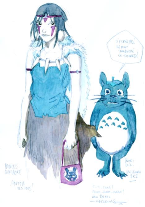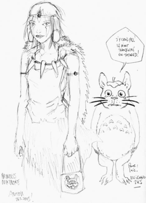 Lorsque qu’enfin arrive mon tour de dédicace, je livre le challenge à Anton et Serge Meirhino : me mettre en scène dans l’univers de Miki leur Ghibli favori. Il semble que Princesse Mononoké emporte à ce moment là l’adhésion d’Anton tandis que Serge transforme Ed le chien en Totoro...