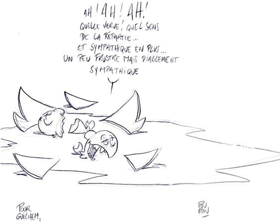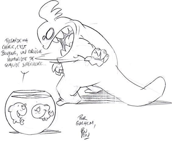 Sympa non ? En tous les cas, j'en profite pour faire une parenthèse à propos de cet auteur et clamer qu'il est d'une gentillesse et d'un humour rares. Chaque fois que nous le rencontrons, il se montre toujours aussi disponible et chaleureux, et comme ses albums sont hilarants, ben, n'hésitez pas à aller le voir en dédicace. L'essayer c'est l'adopter ce garçon : )
