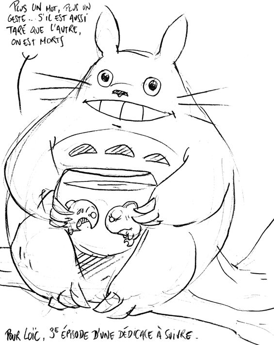 En tous les cas, quand on voit le résultat, on se dit que Mourier a vraiment compris ce que je voulais. Il ne m'a pas fait juste un dessin de plus de totoro, il l'a vraiment incorporé dans l'univers de ses bds.
