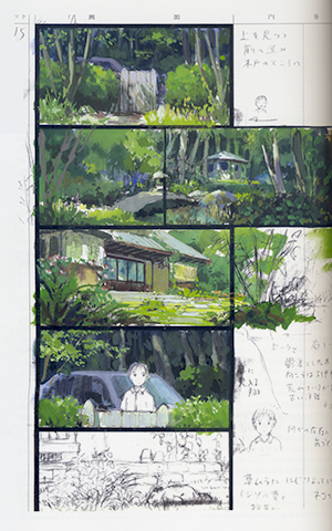 Comme l’explique Suzuki, dans les films du studio Ghibli, tout est orienté par ce document de production et tout dépend de lui. L'e-konte intégralement finalisé avant le début du travail sur l’animation, dès lors, la production de d’Arrietty tranche déjà radicalement avec les dernières productions dirigées par Miyazaki, qui préfère travailler sur une histoire dont il ignore encore la fin.