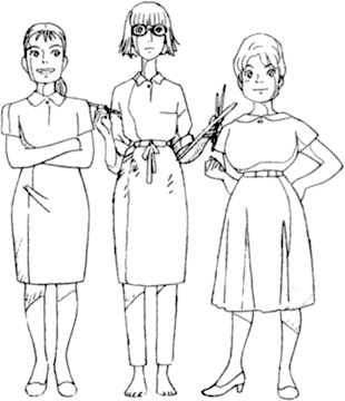 Miki, Sachiko et Yoshiko incarnent les différentes facettes de la jeune femme moderne de l'après-guerre : jeune interne dynamique, artiste-peintre lunaire ou secrétaire enjouée, toutes les trois s'assument, elles sont indépendantes et pleines de vie.