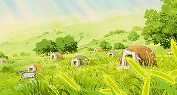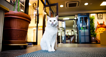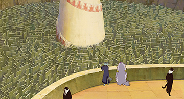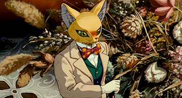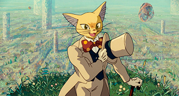 Pour le Royaume des chats, Naoya Tanaka a figuré un monde joyeux et clair, donnant une impression proche de l'illusion ou du mirage.