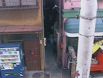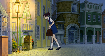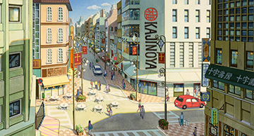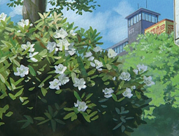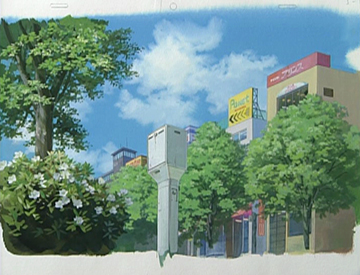 Pour le monde réel (au présent, première image, et dans une séquence de souvenir, seconde image), Naoya Tanaka s'est inspiré d'une ville et d'un quartier résidentiel moyens.