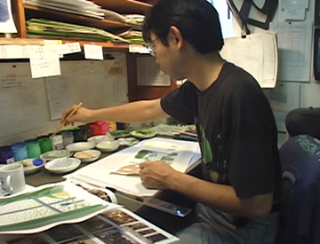 Naoya Tanaka au travail sur les décors du film.