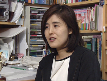 Lorsque l'on m'a proposé ce travail, j'ai pensé que l'on attendait de moi le genre de chose que je fais en tant que dessinatrice de bandes dessinées pour filles. Voilà pourquoi j'ai décidé que mon héroïne serait une lycéenne. À ce moment-là, je réfléchissais souvent à ce qu'est le bonheur pour un être humain, et je crois que cette question se retrouve dans mon histoire.