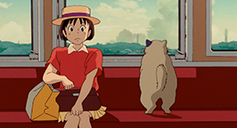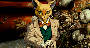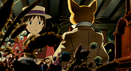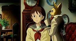 Le lendemain matin, Shizuku traîne au lit et sa grande sœur lui demande de passer à la bibliothèque apporter le déjeuner de son père. Shizuku prend donc le métro pour se rendre en centre-ville. Un gros chat vient de s'installer à côté d'elle sur la banquette et intrigue la jeune fille. Quand ce dernier descend au même arrêt qu'elle, Shizuku décide de le suivre par curiosité. Malheureusement le matou la sème à la sortie de la gare. Déçue, Shizuku se rend à la bibliothèque. Mais en montant les marches de l'entrée du bâtiment, elle aperçoit à nouveau le chat en contrebas. La jeune fille se lance alors à sa poursuite et arrive bientôt dans un quartier résidentiel. Elle le perd encore une fois mais un aboiement la remet sur la voie. Le chat finit par entrer dans une boutique d'antiquités. Interloquée, Shizuku y entre à son tour. Elle s'émerveille devant tous les trésors exposés, avant de remarquer une figurine de chat en costume qui semble la fixer.