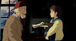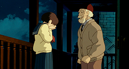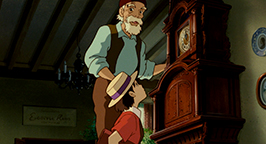Le propriétaire de la boutique, un vieil homme, met quelques instants avant de se manifester. Il avoue à Shizuku que cette figurine s'appelle Baron et que celui-ci s'ennuie beaucoup. Devant l'intérêt croissant de la jeune fille, l'homme lui montre une vieille horloge qu'il vient de restaurer. Shizuku est fascinée par les automates et par l'histoire de la pendule. Passionnée par les explications du propriétaire, la jeune fille ne voit pas l'heure tourner et, quand l'horloge pointe midi, se souvient brusquement qu'elle est attendue.