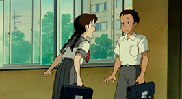 Les deux filles sortent du bâtiment et s'installent sur le banc qui fait face au stade du collège. Shizuku donne alors à son amie la traduction en japonais d'une chanson américaine intitulée Country Road, destinée à la chorale de l'école. Yuko, en la fredonnant est immédiatement enthousiaste, ce qui n'est pas le cas de Shizuku qui déplore l'aspect trop conformiste de sa traduction. Elle lui tend alors une autre chanson parodiant la première : Concrete Road (Ndlr : « la route du ciment » en traduction littérale) et qui amuse beaucoup Yuko.