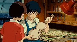 Shizuku le découvre en train de fabriquer un violon. La jeune fille, impressionnée, insiste alors pour qu'il en joue. Mais le garçon accepte avec réticence et demande, en contrepartie que Shizuku l'accompagne au chant. Il commence à interpréter Country Road. Shizuku s'exécute timidement au début puis prend peu à peu plus d'assurance. Arrivent alors le propriétaire de la boutique et deux de ses amis. Chacun se met à accompagner le jeune duo à la contrebasse, à la flûte et à la guitare, exécutant un petit concert improvisé.