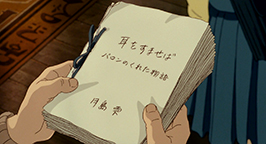 En courant vers la bibliothèque, Shizuku se réjouit de connaître désormais un tel endroit. En arrivant à la bibliothèque, elle est interpellée par le « goujat » qui s'était moqué d'elle et de sa chanson à l'école. Il lui rapporte en fait le repas de son père qu'elle avait oublié dans la boutique. Shizuku est surprise d'apprendre ce lien entre ce garçon et la boutique du vieux monsieur. Le jeune homme ne lui laisse pas le temps de s'étonner plus, et après lui avoir fait remarquer sa négligence, repart aussitôt sur son vélo en chantonnant Concrete Road, ce qui ne manque pas d'énerver Shizuku !