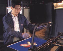 Photographie des cellulos sans le décor / cellulos et éléments du décor sont ensuite combinés sur ordinateur.