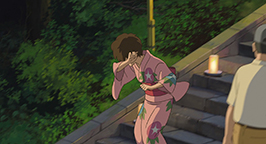 Le soir, Anna accompagne donc Nobuko et ses amies afin d'assister à la fête locale. Elle n'arrive pas réellement à intégrer le groupe et s'isole pour écrire un vœu qu'elle doit accrocher à l'un des arbres du temple pour qu'il se réalise. Mais son papier est interceptée par Nobuko qui découvre le vœu d'Anna : elle souhaite simplement une journée normale. La jeune fille remarque alors les yeux d'Anna, d'un bleu profond inhabituel pour une japonaise.