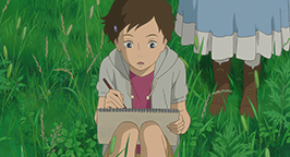Anna décide d'aller voir par elle-même en barque. Alors qu'elle s'approche de la demeure, elle ne peut que constater que ce dernier subit de nombreux travaux. Une petite fille, prénommée Sayaka, ouvre grand la fenêtre de de la chambre et interpelle l'adolescente, l'appelant Marnie. Anna est sous le choc. Sayaka l'invite à la rejoindre dans sa chambre. La petite fille est convaincue qu'Anna est Marnie et lui dit avoir retrouvé son journal intime dans la chambre. Elle lui confie et Anna découvre qu'il manque des pages au carnet, qui s'arrête à la danse dans le jardin.