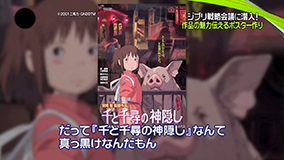 « Ca n'a rien à voir », lui rétorque Suzuki. « Tu vois l'affiche de Chihiro ? C'est tout noir et en plus, il y a un gros cochon dessus. Il n'y a aucun lien avec ce que tu nous racontes. Pour Le Royaume des chats, la fille dort dans l'herbe. J'ai beaucoup cherché cette image dans le film avant de la trouver. L'équipe n'était pas d'accord parce que son visage était de profil. Mais si Haru était de face, ça n'aurait pas fonctionné et les gens ne seraient pas venus voir le film. Mais au final, c'était ce qu’il fallait et ç'a eu du succès. Tu vas continuer à chercher. »