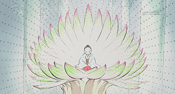 Alors que l'armée s'apprête à défendre la princesse, Bouddha fait un geste et tous s'endorment. Seule la princesse, sa mère et la servante semblent résister au charme. Les apsaras se mettent à voleter autour de la princesse et semblent l'hypnotiser. Elles l'attirent, tel un fantôme, vers le nuage.