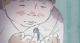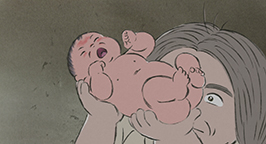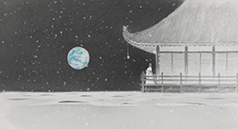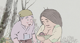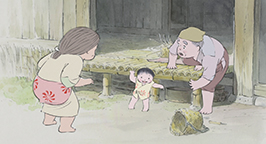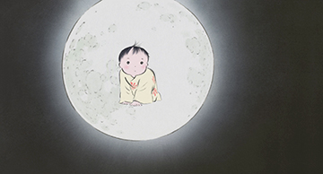 Et dans la Lune, apparaît alors la princesse Kaguya alors qu'elle n'était qu'un bébé.
