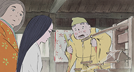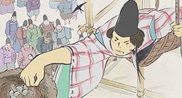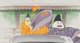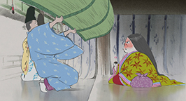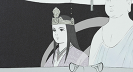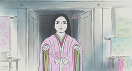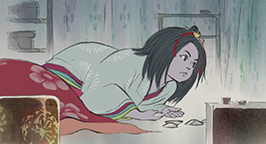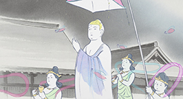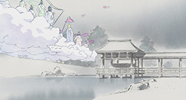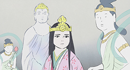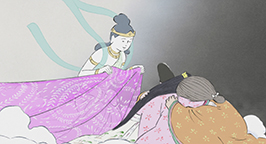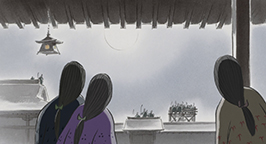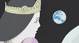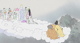 Le 15 arrive. L'armée se dresse autour de la maison de la princesse. Son père a ses armes prêtes, sa servante se tient au garde-à-vous devant la chambre de la jeune fille, et la princesse est blottie dans les bras de sa mère, résignée à quitter ce monde. Au beau milieu de la nuit, alors que la pleine lune luit dans le ciel, un mystérieux équipage descend de l'astre à bord d'un nuage. Des divinités bouddhistes et des apsaras volantes encadrent un bouddha, sur une musique joyeuse et entraînante.