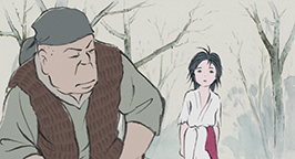 Elle rencontre un vieux charbonnier qui lui explique que la famille de Sutemaru est itinérante, car dépendante de la nature. En effet, les charbonniers ne peuvent mettre en péril la nature et doivent la laisser se régénérer, ils sont donc contraints à une forme de nomadisme. Elle quitte donc la montagne et s'effondre, inconsciente, dans la neige.