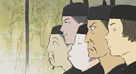 La cérémonie est l'occasion pour le père de la princesse Kaguya d'organiser une grande fête où tous les nobles sont invités. La jeune fille est à l'écart, protégée des regards, mais entend les propos avinés et avides des hommes, qui désirent tous la voir.