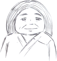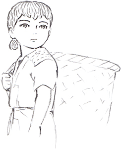 Personnage discret, à peu près du même âge que la princesse Kaguya, la servante n'en est pas moins omniprésente et déterminée à servir au mieux les intérêts de la jeune fille. Totalement muette, elle commente pourtant souvent l'action par des mimiques et des attitudes drolatiques. On entendra le son de sa voix à la toute fin du film, lorsqu'elle entonnera avec courage la comptine de la princesse, réussissant ainsi à la sortir de sa torpeur.