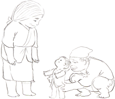 Sutemaru est aux yeux de la princesse, le symbole du bonheur simple qu'elle éprouvait dans la montagne. Le revoir sans possibilité d'un avenir ensemble provoquera donc chez la jeune fille une forme de résignation et de souffrance. Quant à lui, bien que les années aient passé et que leurs vies respectives n'aient plus rien en commun, il se prendra à rêver d'une vie auprès d'elle libérée de toute contrainte.