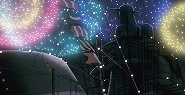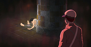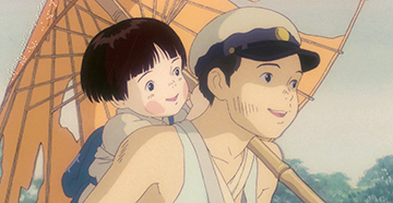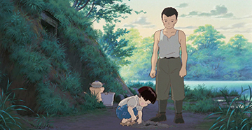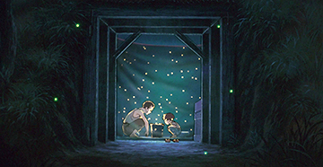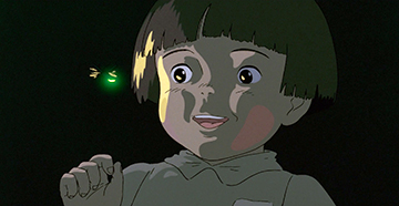 On retrouve sans cesse ce subtil jeu de mise en scène. C'est le cas pour la fabuleuse scène des lucioles, dans l'abri de Seita et Setsuko. Tous deux réunis dans le noir libèrent des lucioles, créant une lumière qui effleure leurs visages souriants. Peu à peu, les petits insectes forment des images, qui prennent vie pour devenir un souvenir de l'enfance de Seita. C'est un pur moment de magie que nous offre Takahata, une parenthèse dans cette vie quotidienne de lutte.
