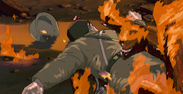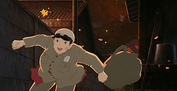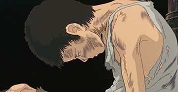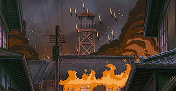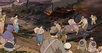 Les scènes de guerre sont particulièrement concrètes : bombardements de Kobe, mort de Seita, crémation de Setsuko, corps rongé par la maladie ou jeté dans une fosse... Sans compter le rationnement, véritable obsession engendrant médisances, envies et vols.