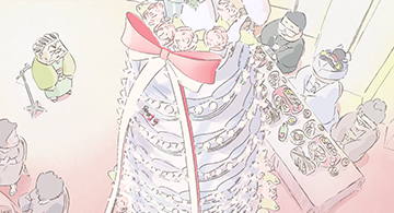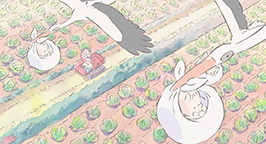 La séquence d'ouverture post-générique, intitulée Takashi et Matsuko commencent une vie nouvelle, nous montre les parents en costumes de mariés traditionnels foncer dans un... bobsleigh à leur nom sur fond de marche nuptiale de Mendelssohn autour d'une piste qui se révèle être... leur gâteau pièce montée de mariage ! Tandis qu'un « ancêtre » prononce un discours sur leur vie future, le « bob » quitte les airs, se transforme en superbe voilier avant de fendre les eaux de l'océan.