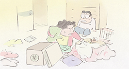 Matsuko, la mère, délaisse volontiers les tâches ménagères. Elle confie ses courses à Shige ou à Takashi et se cache jusqu'à ce que Noboru, le fils, cuise lui-même les nouilles. La manipulation des autres est une de ses spécialités : « Et si on commandait des sushis ? » propose-t-elle à sa mère. « C'est du luxe, je vais en préparer moi-même » rétorque celle-ci. « Et voilà, dans le mille ! » se réjouit Matsuko en aparté. Mais son plan échoue car Shige se lance dans la confection d'un bœuf Stroganov dont elle n'arrive pas à prononcer le nom. Tout ça pour le rater et... commander des sushis !