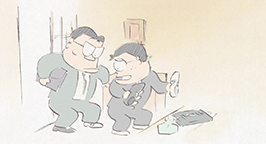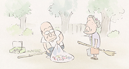 Plus tard, Shige fait du bénévolat « citoyen ». Elle ramasse les ordures dans un parc de la ville et dispute farouchement son territoire à un congénère qui soupire : « Elle n'a pas changé en 60 ans... »