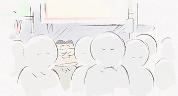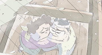 Mais très vite, à l'arrivée de Shige et de Matsuko dansant au son des casseroles, on retrouve le style propre aux Yamada, permettant ainsi au discours moralisateur mais comique de Shige d'apparaître directement dans la scène. Takahata dédramatise ainsi en quelques secondes la scène et libère à nouveau toute sa verve et sa mise en scène débridée.